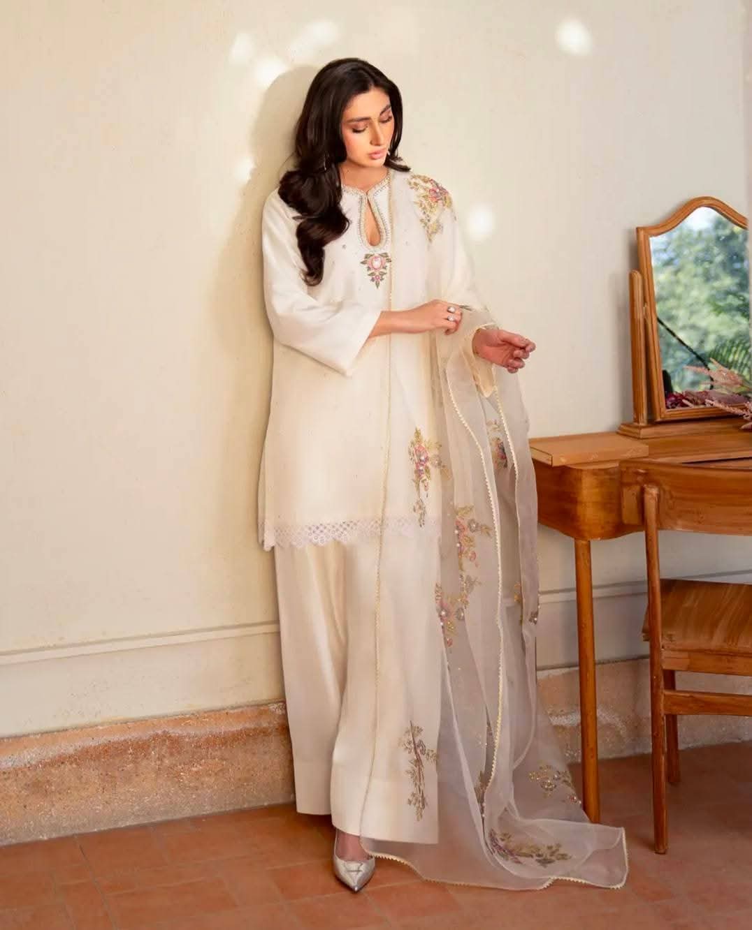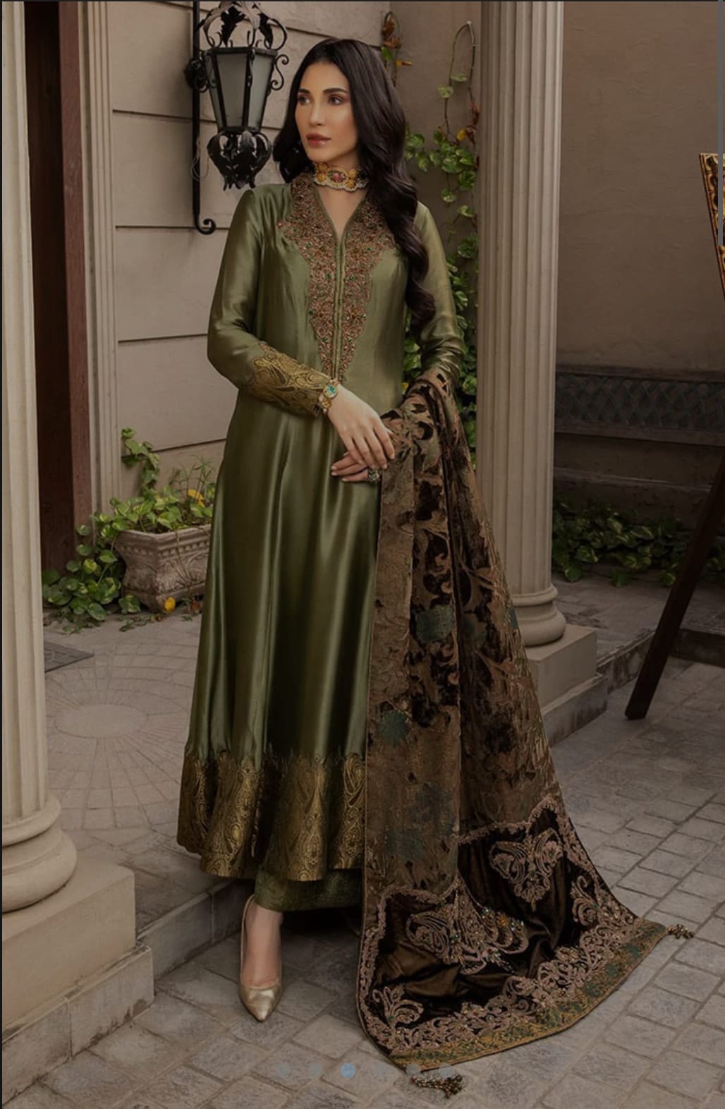 Fabric: Silk Pishwas with handworked velvet shawl and plain silk pants.