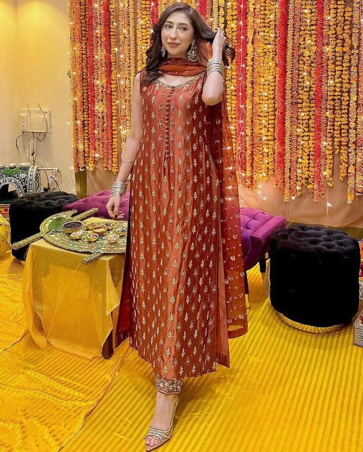 Fabric: Lama shirt zardozi worked paired with handwork korean raw silk pants and banarsi organza dupatta